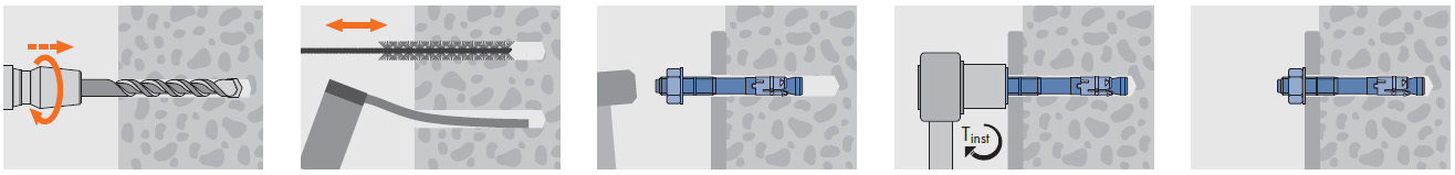 Характеристики: - Европейское Техническое Свидетельство, опция 1, для сжатой и растянутой зоны бетона - Коррозионностойкое покрытие анкера — Geomet® , допущено для влажной зоны влажности и среднеагрессивной среды - Распорный элемент из нержавеющей стали 1.4016 ISO 4954E2 - Контролируемое расклинивание - Предварительный или сквозной монтаж