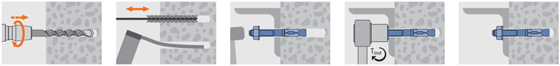Характеристики: - Предназначен для установки в сжатую зону бетона - Распорный элемент из нержавеющей стали А4 - Контролируемое расклинивание - Горячее цинкование, толщина >45 мкм по EN ISO 1461 либо Нержавеющая сталь А4/316 - Предварительный или сквозной монтаж
