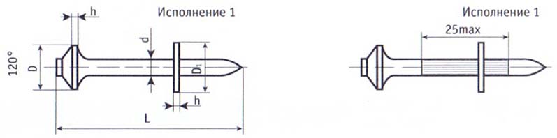 Техническая характеристика дюбель-гвоздя металлического для монтажного пистолета с шайбой