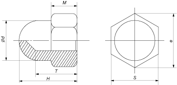 Размеры высоких шестигранных колпачковых гаек DIN 1587 в мм
