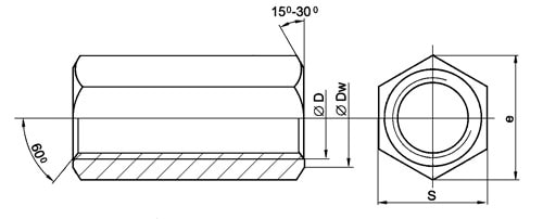 Соединительные (переходные) гайки DIN 6334 (М6-М12)