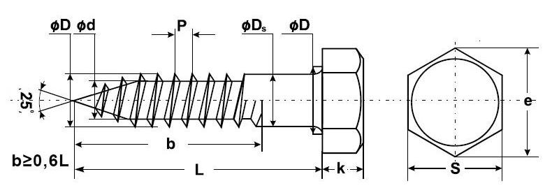 | Длина резьбы | b, мм | ≥ 0,6 L | ≥ 0,6 L | ≥ 0,6 L | ≥ 0,6 L |