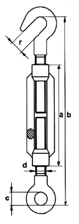 Таблица размеров и характеристик талрепов крюк-кольцо DIN 1480