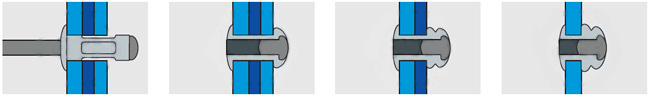 Основное применение заклепки вытяжной – неразъемное соединение тонких стальных листов и прочих листовых материалов. Также заклепка вытяжная используется для монтажа фасадных пластин, гофролистов и т.п. к различным конструкциям.