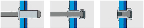Основное применение заклепки вытяжной – неразъемное соединение тонких стальных листов и прочих листовых материалов. Также заклепка вытяжная используется для монтажа фасадных пластин, гофролистов и т.п. к различным конструкциям.