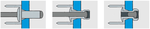 Основное применение заклепки вытяжной – неразъемное соединение тонких стальных листов и прочих листовых материалов. Также заклепка вытяжная используется для монтажа фасадных пластин, гофролистов и т.п. к различным конструкциям.